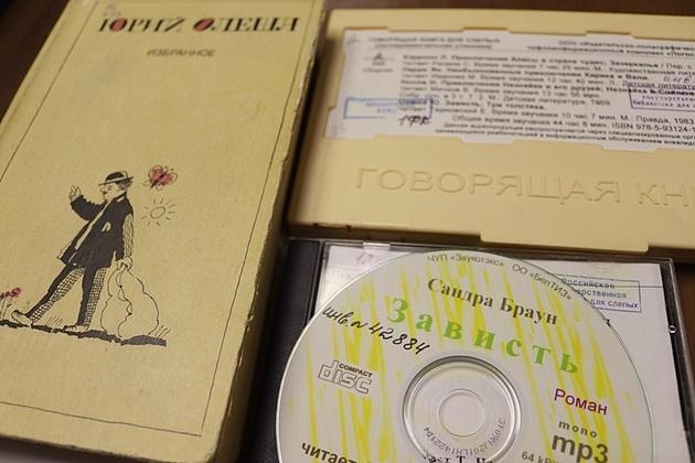 Книги на выставке представлены на разных носителях, доступных слабовидящим и незрячим читателям.