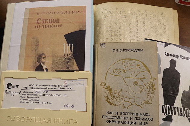 В различных жанрах литературы в разные времена писали о том, как живут, как «смотрят» на мир люди, которые лишены бесценного богатства – видеть жизнь во всех ее красках. Библиотекари подготовили книги по разным темам для любого возраста в специальных форматах для слепых и слабовидящих. Среди них представлены: Т. Малковски «Камил видит руками», О. Скороходова «Как я воспринимаю, представляю и понимаю окружающий мир», Н.Думбадзе «Я вижу солнце», В. Короленко. «Слепой музыкант», А. Лапшин «Роман одиночеств» и др.