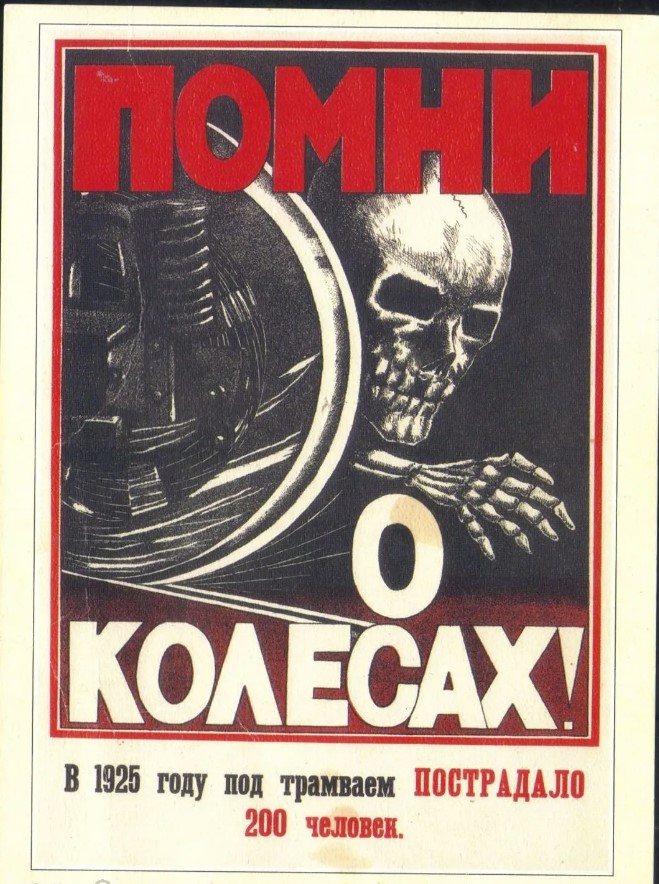 Видимо, у людей в начале века были все основания воспринимать этот вид транспорта как предмет опасный: согласно знаменитому плакату «Помни о колесах!», в 1925 году под трамвай в Москве попали 200 человек.
