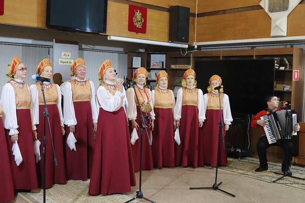 Перед читателями выступил вокальный ансамбль «Русская мелодия», созданный в Культурно-спортивном реабилитационном комплексе ВОС МГО ВОС. Руководитель – Сергей Пищальник.