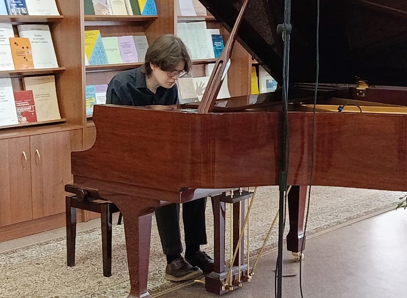 Для слушателей библиотеки выступили лауреаты всероссийских и международных конкурсов: студент 1-го курса Московской консерватории Матвей Завезенков, студент 2-го курса Московского государственного колледжа музыкального исполнительства им. Ф. Шопена Арсений Вдовиченко и выпускник Московского губернского колледжа искусств пианист Евгений Николаев.