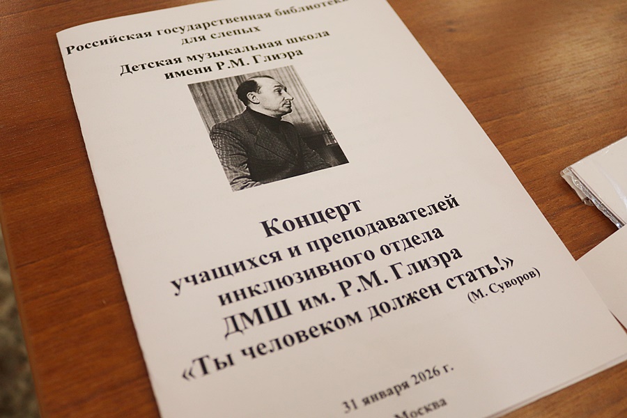 31 января 2026 года в читальном зале Российской государственной библиотеки для слепых состоялся традиционный концерт учащихся и преподавателей инклюзивного отдела Детской музыкальной школы им. Рейнгольда Глиэра.