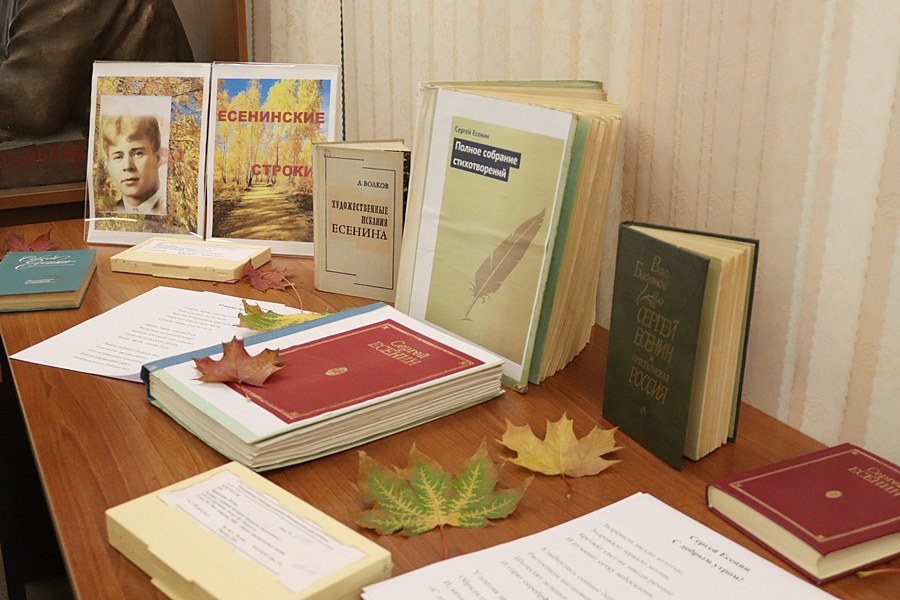 Пользователям библиотеки была показана презентация «Сергей Есенин: образ, стихи, эпоха», аудио- и видеоролики с его стихами, а также прозвучал отрывок из произведения «Свияжска – остров любви» Розы Ахтямовой, незрячего прозаика, поэта, члена Союза журналистов России, посвященный Сергею Есенину. К мероприятию был подготовлен книжный развал со сборниками стихотворений поэта. «Есенинские строки».