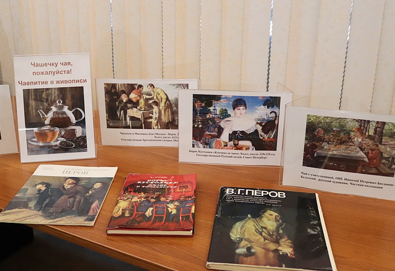 Читатели приняли активное участие в викторинах с призами «Чайные секреты» и «Песня из трех нот, завоевавшая весь мир», которая рассказывает о чайной. На мероприятии была организована книжно-иллюстративная выставка «Чашечку чая, пожалуйста! Чаепитие в живописи» и представлена уникальная подборка картин на тему чаепития с тифлокомментариями к репродукциям: В. Перов «Чаепитие в Мытищах, близ Москвы», Н. Богданов-Бельский «Гости учительницы», К. Коровин, «За чайным столом», Б. Кустодиев, «Купчиха за чаем», К. Маковский «Чаепитие».