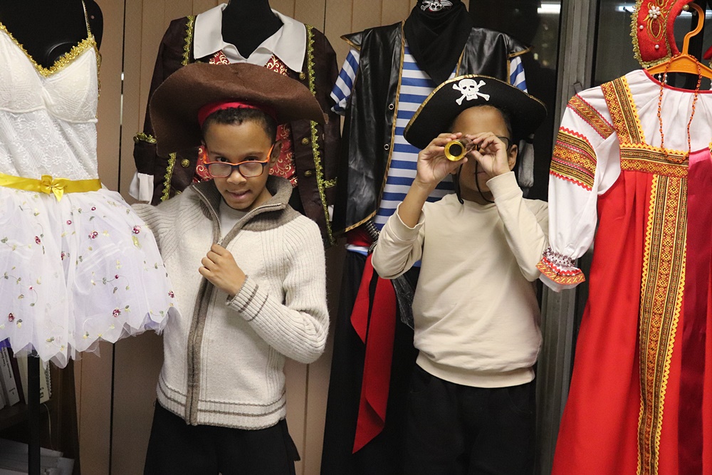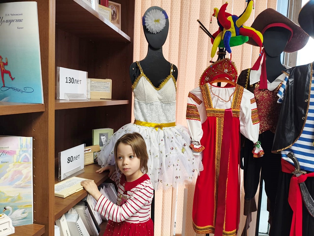 Выставку посещают посетители всех возрастов и подолгу рассматривают театральные костюмы, театральные аксессуары и рельефную графику.