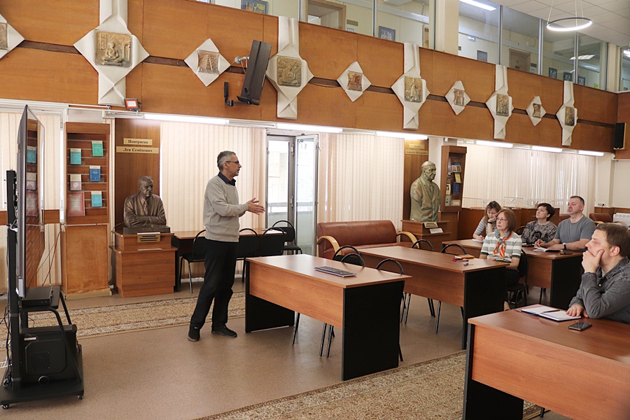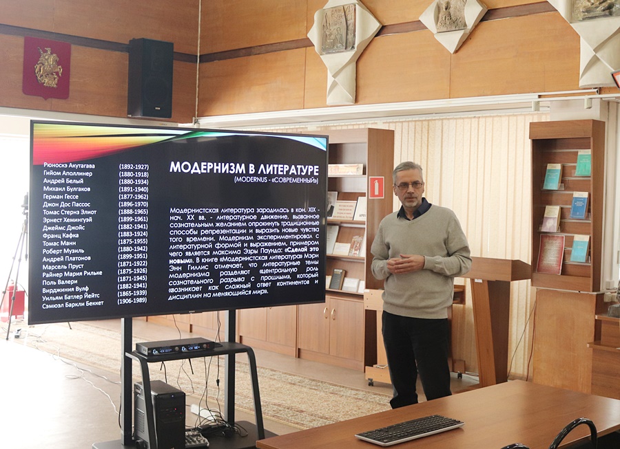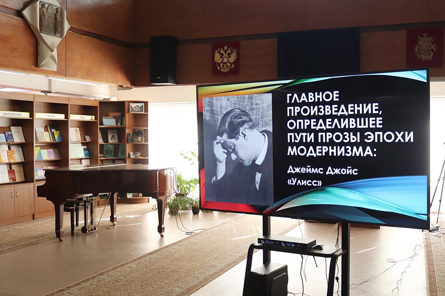 1 апреля 2026 года в Российской государственной библиотеке для слепых прошел методический семинар «Главное произведение, определившее пути прозы эпохи модернизма», посвященный жизни и творчеству ирландского писателя Джеймса Джойса, и созданию его романа «Улисс». Его провел главный библиотекарь отдела организационно-методической, научно-исследовательской и редакционной работы Олег Рубис.