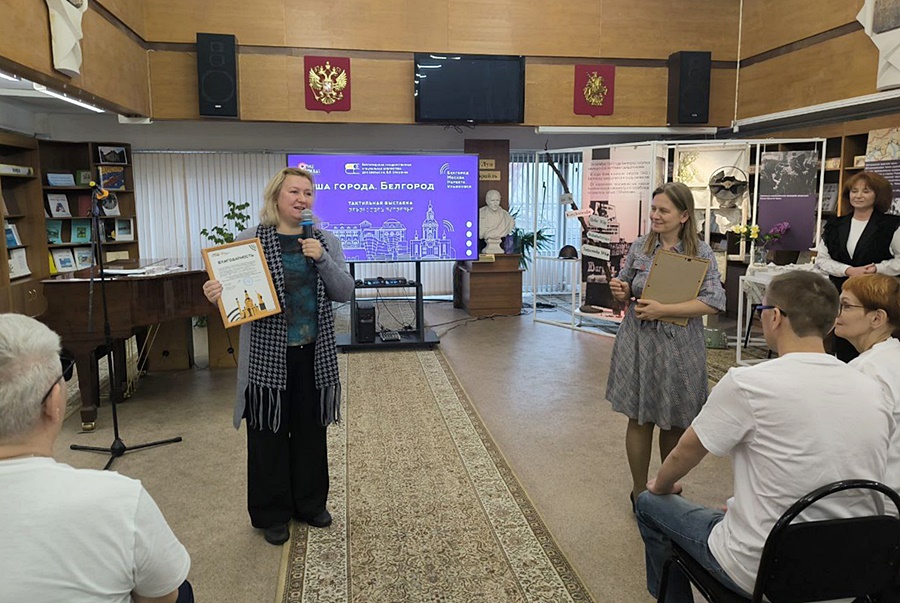 10 октября 2025 года в читальном зале Российской государственной библиотеки для слепых состоялось открытие тактильно выставки «Душа города. Белгород».