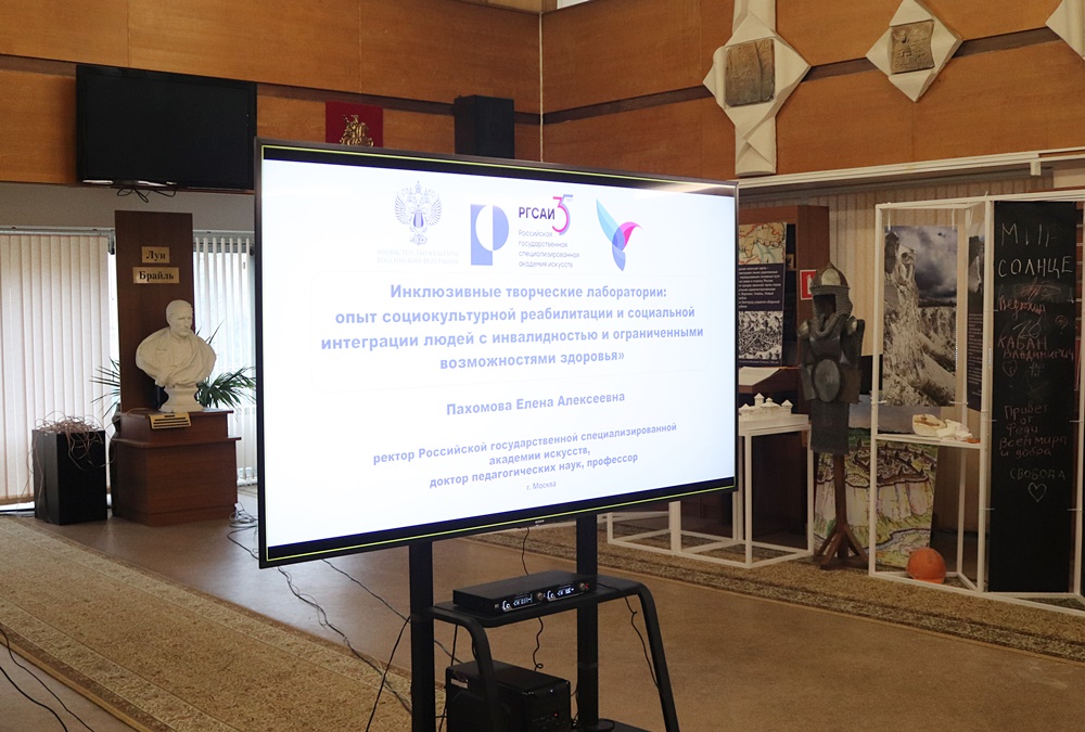 На нем был представлен опыт создания и функционирования инклюзивных творческих лабораторий (ИТЛ), организованных на базе учреждений культуры Российской Федерации, их роль в создании условий для интеграции людей с ОВЗ в культурную жизнь общества, перспективные направления деятельности, способы решения организационных вопросов, возможности проектного офиса инклюзивных творческих лабораторий, действующего на базе РГСАИ, а также ресурсы РГБС в поддержку развития новых форм социокультурной реабилитации и творческой самореализации лиц с проблемами здоровья.