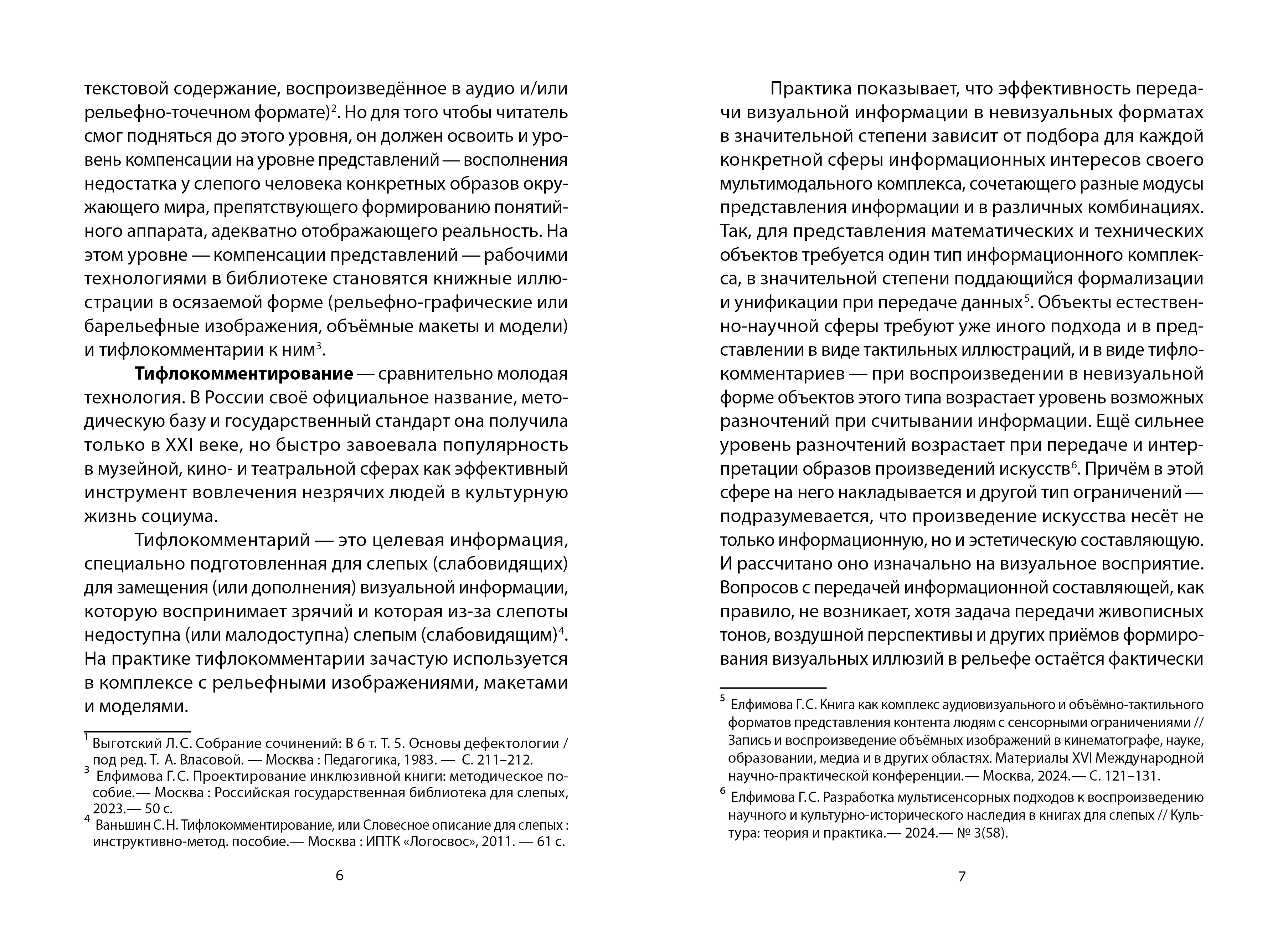 : научно-практическое пособие : 12+ / Г. С. Елфимова ; Российская государственная библиотека для слепых. — Москва : [б. и.], 2025. — 98 с. : ил. — ISBN 978-5-907940-14-7. — Текст.
