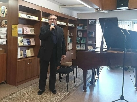 Перед читателями библиотеки выступил лауреат международных конкурсов, пианист, доцент РГСАИ Алексей Панов. Он познакомил слушателей с жизнью и творчеством Вольфганга Амадея Моцарта и Ференца Листа.